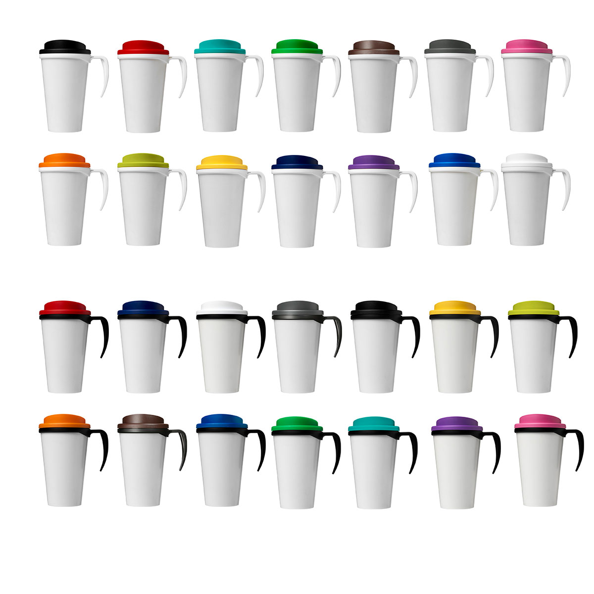 Americano® Grande Foto har samma volym som Americano® Thermal men levereras med ett handtag i svart eller vitt. Med digitalt fototryck kan du trycka allt från enkla logos till avancerad grafik eller fotografier. Muggen har dubbla väggar som håller drycken varm och utsidan kall. Silikongrepp kan inte väljas till. Tål maskindisk.
