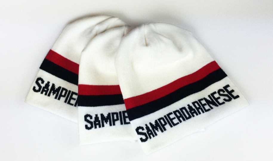 Supersnygga supportermössor med instickad logo till kändislaget Sampierdarenese
