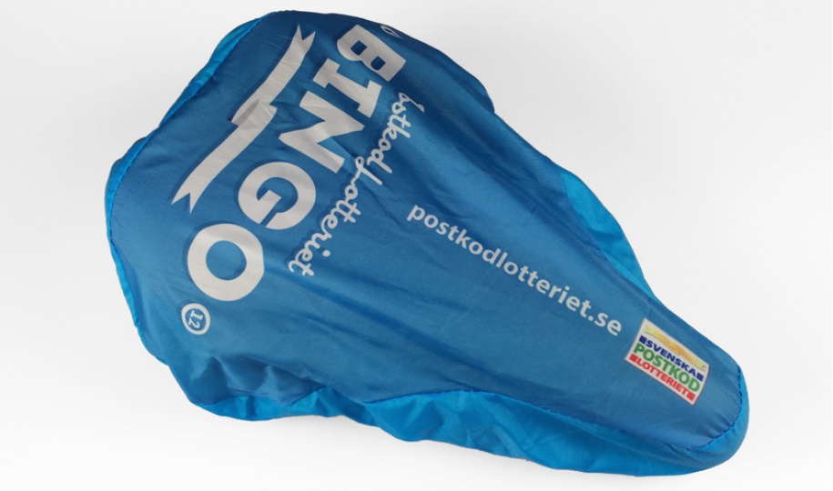 Sadelskydd med tryck är en riktigt uppskattad profilprodukt under regniga dagar. Sadelskydd är även en produkt som med fördel kan användas för att marknadsföra butiker, företag och event. Fäst ett sadelskydd på varje cykel i stan och ni får garanterat god respons.