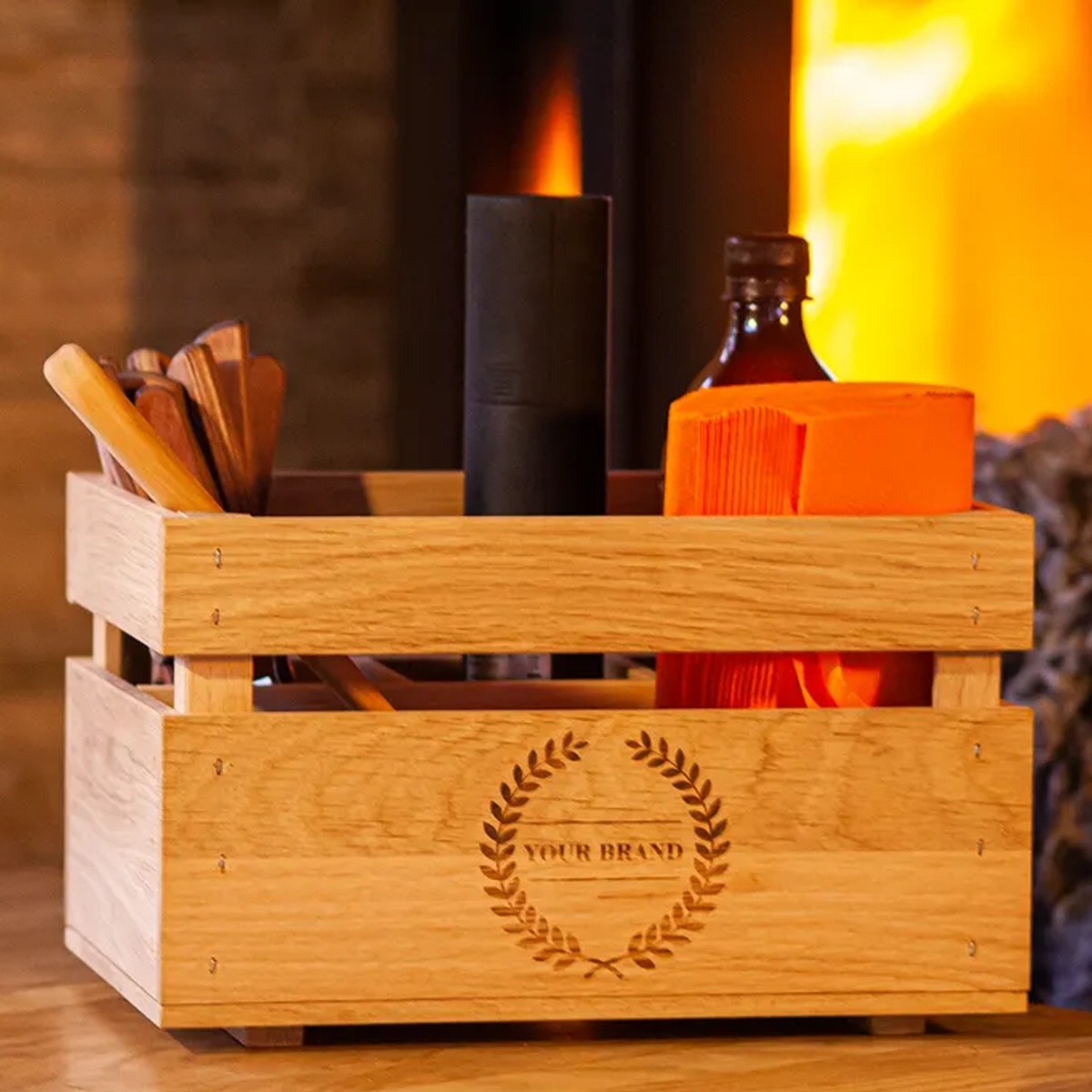 Slitstark och rustik låda tillverkad i ekträ. Passar perfekt som förvaringslåda då lådan har 4 fack. Lådan fungerar även utmärkt för exponering av olika sorters varor. Tåligt material som håller för tunga prylar. Beställ Trälåda Ek med ert eget namn eller logo.