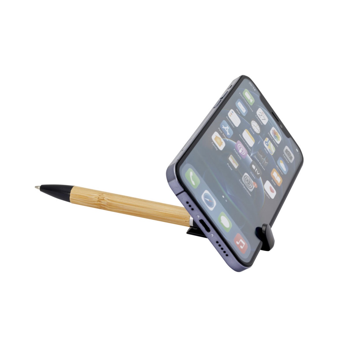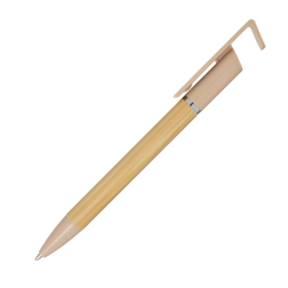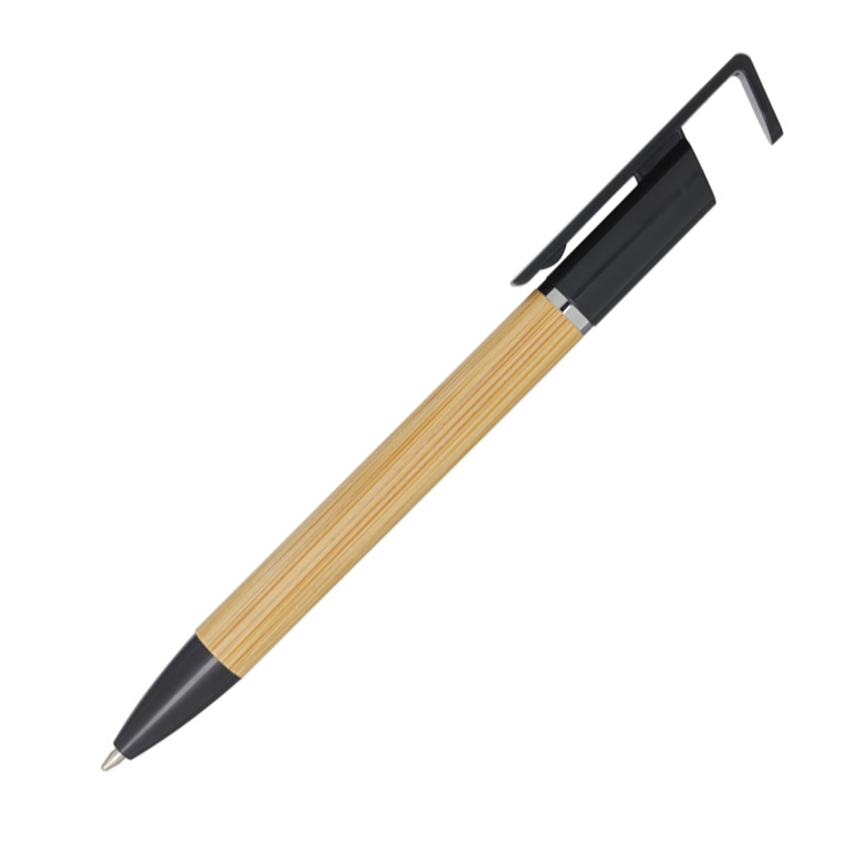 En penna som gör mer än att bara skriva. Med Reklampenna Mobilhållare kan du enkelt ställa upp din telefon i pennans lock. Reklampenna Mobilhållare är en kulspetspenna tillverkad av FSC®-certifierad bambu och återvunnen plast. Pennan har blått bläck och en skrivlängd på hela 1000 meter. NIB-storlek: 1,0 mm.