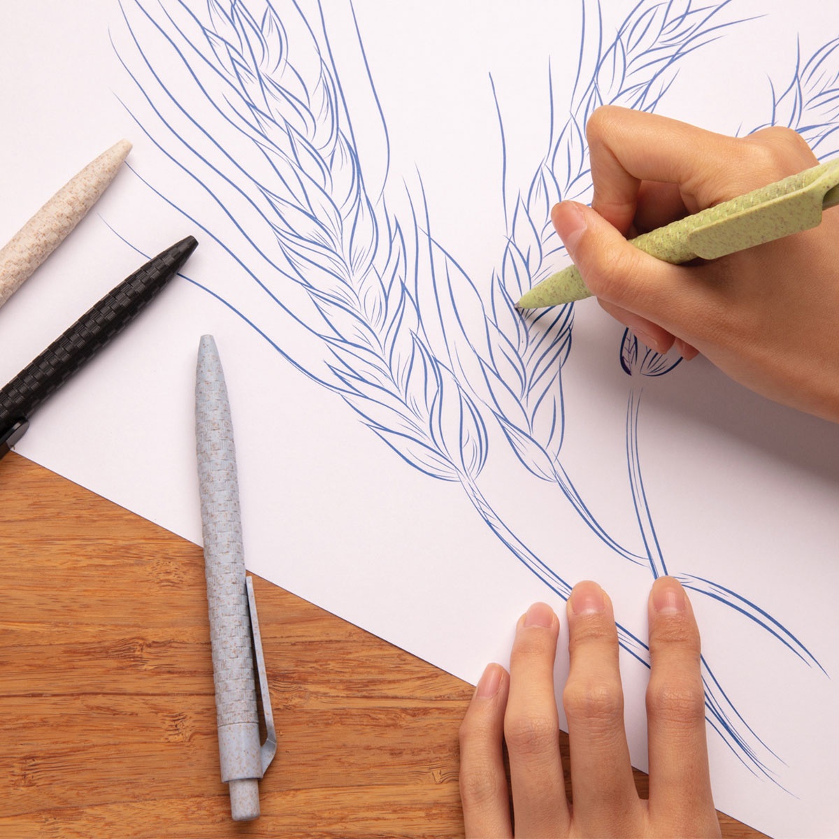 Reklampenna Vete är ett miljömetvetet val. Denna hållbara penna ät tillverkad av överblibna själkar från skördad vete. Pennan har blått bläck. Finns i 4 olika färger. Skrivlängd: 1200 meter. TC-kula för en extra bra skrivkänsla. Vetestrå sammansättning 40% vetestrå och 60% ABS