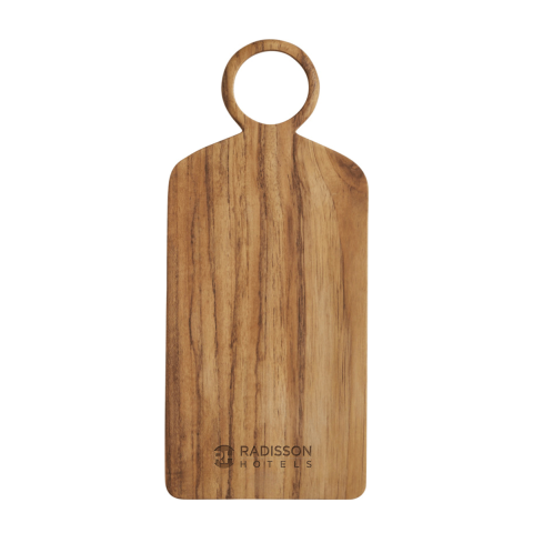 Denna livsmedelssäkra och hållbart producerade skärbräda är tillverkad av rotdelar från teakträ, en naturlig restprodukt från teakindustrin. Virket kommer från certifierade teakplantager i Indonesien och varje skärbräda tillverkas för hand av skickliga hantverkare i en liten verkstad på landsbygden i östra Java. Skärbrädan fungerar utmärkt både som stabil underlag för hackning och som elegant serveringsbricka. Den minimalistiska, naturinspirerade designen gör den till ett stilfullt och funktionellt inslag i varje kök.. Storlek: 41 x 17 x 2 cm. Återvunnet trä.