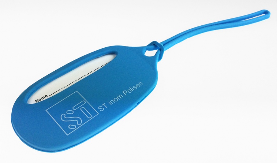 Supersnygga bagagebrickor i mjuk silikon. Infärgade i en ljuvlig blå nyans tillsammans med logotypen tryckt i vitt.