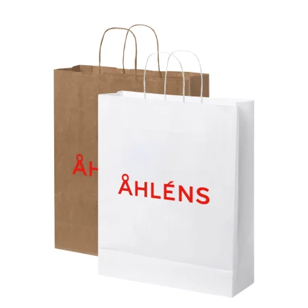 Om du letar efter ett mer traditionellt alternativ kan våra papperskassar vara det rätta valet för dig, din butik eller företag. De är tillverkade av högkvalitativt papper, miljövänliga och hållbara alternativ finns som är biologiskt nedbrytbart och återvinningsbara.Vi erbjuder papperskassar i olika storlekar och utföranden, och de kan tryckas med din egen logotyp eller design för att skapa ett professionellt och unikt utseende anpassade efter era behov.