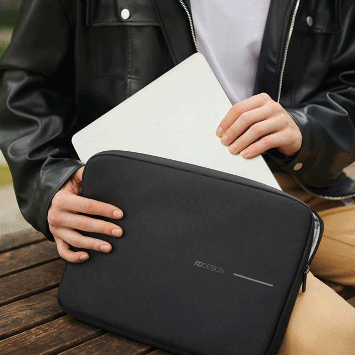Skydda din dator med ett snyggt och praktiskt datorfodral från varumärket XD Design. Dessa datorfodral är tillverkad av återvunnet material. Ovan kan du se symboler som visar totala vattenbesparing samt koldioxidutsläpp för produkten. Beställ datorfodral med eget tryck!