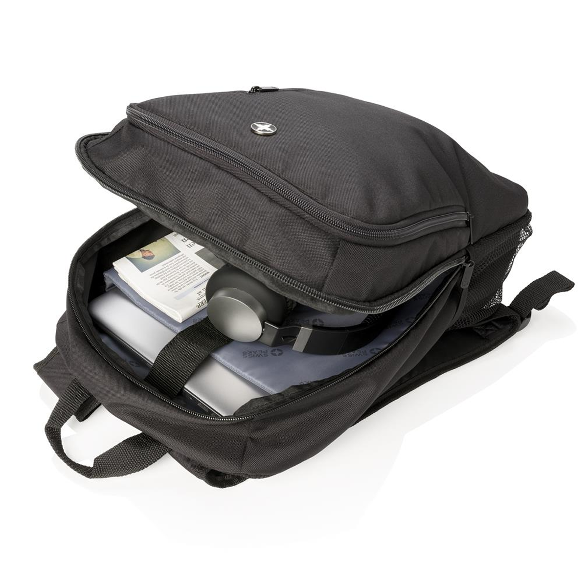 Populär ryggsäck med minimalistisk strömlinjeformad design från varumärket Swiss Peak. Tillverkad i polyester och är helt PVC-fri. Laptopfacket är kompatibel med laptops upp till 17 tum. Ryggsäcken har ett praktiskt sidofack för vattenflaska.