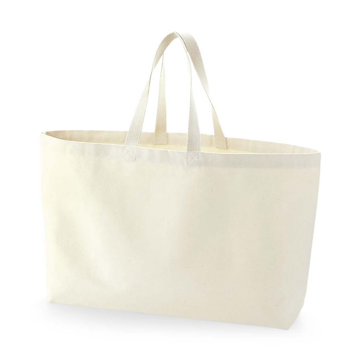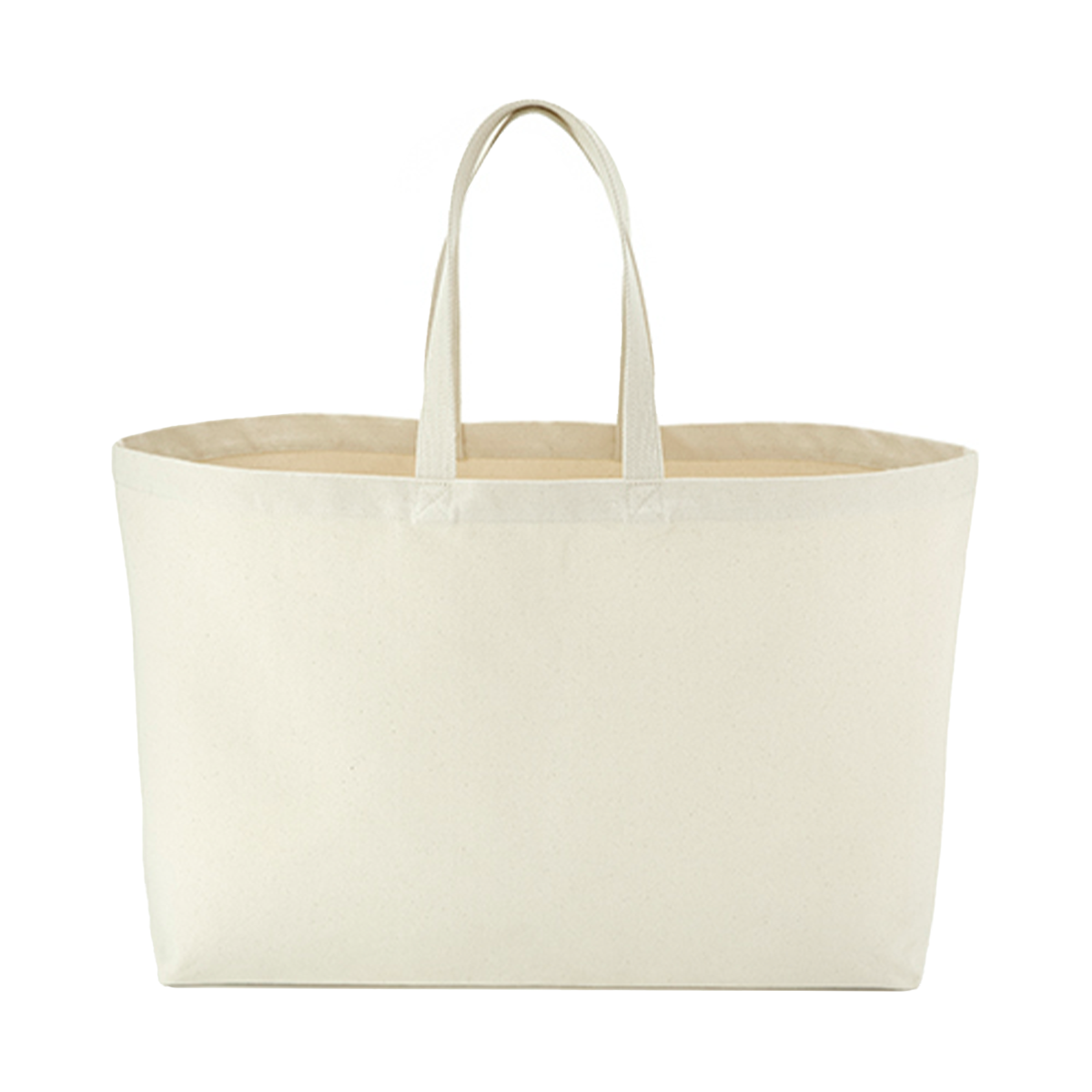 Extra stor bomullskasse som rymmer hela 37 liter. Kassen har storleken 56x41x16cm och passar utmärkt till storshoppingen, badhusutflykten eller som giveaway. Bekvämt med långa handtag (61cm). Bär enkelt kassen över axeln eller i handen. Beställ stora bomullskassar med eget reklamtryck.