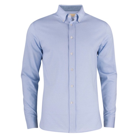 Bekväm och stilren jerseyskorta med oxford look. Skjortan passar utmärkt till en AW, kontoret, eller kundbesök. Skjortan har Button down-krage och reglerbara manschetter. Välj mellan fyra olika färger på skjortan. Tillverkad av 60% bomull och 40% polyester.