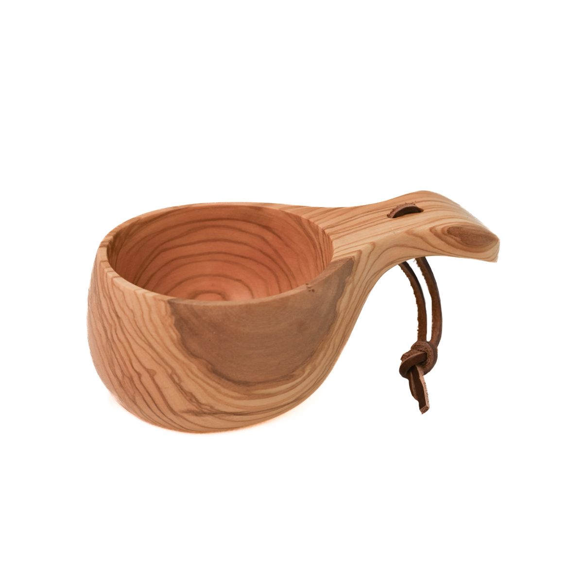 Kuksa är en traditionell nordisk kåsa som används för att dricka kaffe, te eller andra drycker i friluftslivet. tillverkad i olivträd och har en lädersnodd för enkel upphängning. Volymkapacitet: 1,5 dl. Beställ träkåsor med egen gravyr!