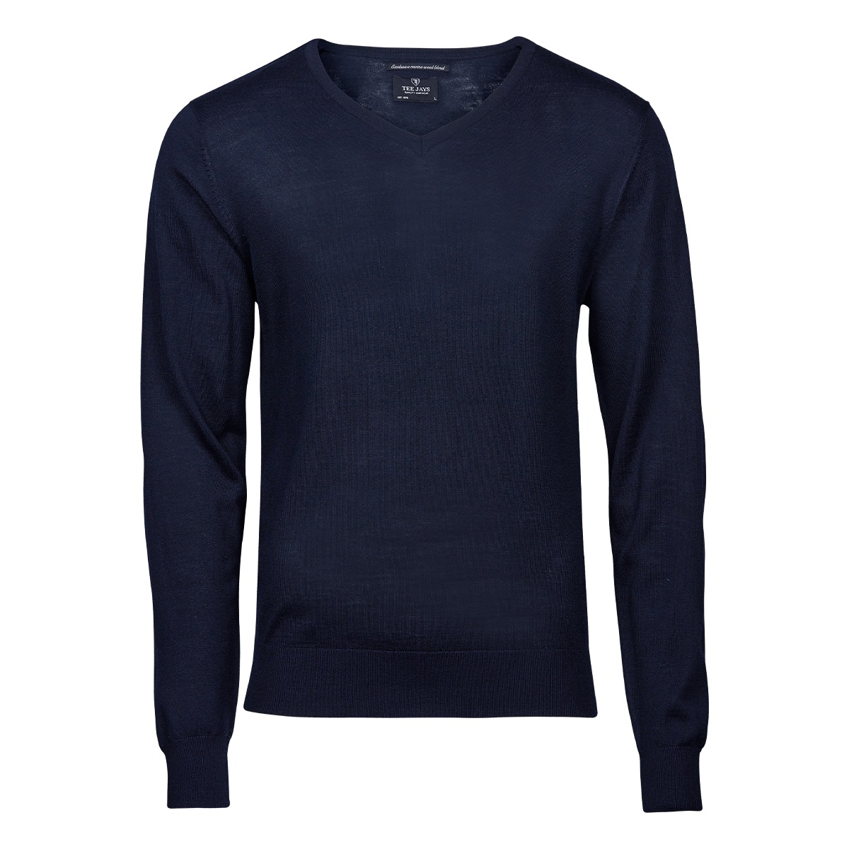 Mjuk och skön v-ringad stickad tröja som passar utmärkt att bära över en skjorta eller t-shirt. Plagget är tillverkad i premium italiensk merino/polyakryl blandat garn. Tröjan har ribbstickade detaljer i nederkant och ärmslut. Välj mellan färgerna svart, grå melerad och marinblå. Beställ stickade tröjor med egen brodyr.